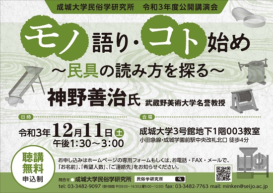 成城大学民俗学研究所は公開講演会を開催いたします。