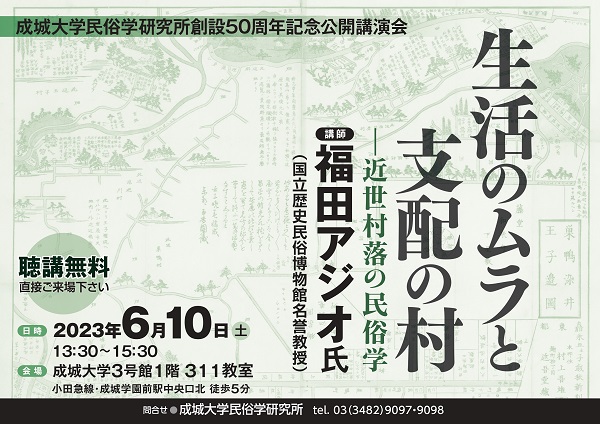 演 題:「生活のムラと支配の村—近世村落の民俗学」