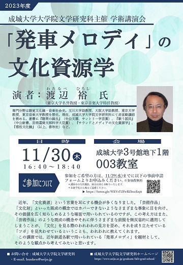 この講演では、近年鉄道各駅で用いられている「発車メロディ」を題材として、そのような観点から考えてみたいと思います。