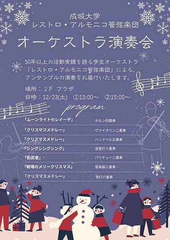 日時:12月23日(土)①13:00~/②15:00~ 場所:成城コルティ 2階 プラザ ※入場無料の演奏会です。