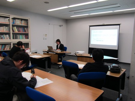 11月6日(火)15時より、博士論文・修士論文・課題研究報告 中間報告会(発表・質疑各20分程度)が開催され、博士課程前期に在籍する2名の学生が修士論文/課題研究報告の研究内容について、博士課程後期に在籍する1名の学生が博士論文の研究内容について報告しました。報告会には教員と在籍生が参加し、活発な質疑応答が行われました。