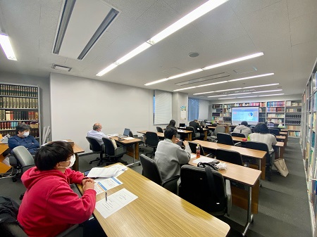 11月15日(火)15時より、修士論文・課題研究報告の中間報告会(発表・コメント各20分程度)を、新型コロナウイルス感染症対策(換気・消毒・マスク着用など)を講じた上で開催しました。博士課程前期に在籍する5名の学生が2会場に分かれ、修士論文・課題研究報告の研究内容について報告し、参加した教員・在籍生と活発な質疑応答が行われました。