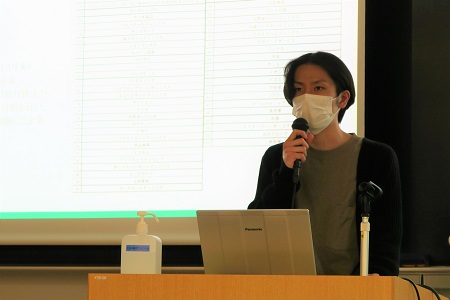 第2回にあたる今回は、第1回に引き続き、博士課程前期の学生3名が、それぞれ15分の持ち時間で、自身の研究について報告を行いました。