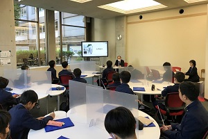 足立学園中学校1年生16名が大学取材訪問で来校しました