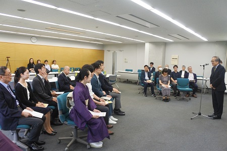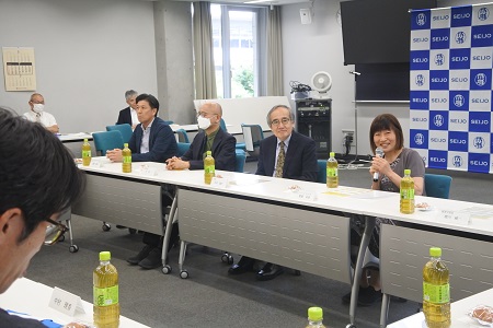 表彰式後には懇談会が行われ、和やかな雰囲気の中、受賞者の学生への思いや授業において試行錯誤している点についてコメントが寄せられました。また、学長、各学部長からは「この賞は、先生方の授業にかけるエネルギー、多様かつチャレンジングな創意工夫が学生に伝わった素晴らしい結果です」と感謝の言葉が贈られました。教員一人一人の熱意が成城大学の学習者中心主義を支えているという事が再確認できるとともに、情報交換を通じて親睦を深めることができ、たいへん有意義な式となりました。