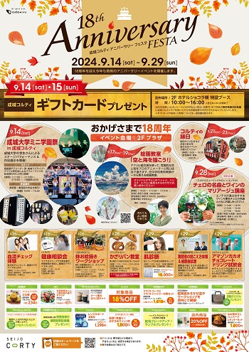 小田急成城学園前駅直結「成城コルティ」で行われる「成城コルティ 18th Anniversary Festa」に合わせたコラボレーションイベントとして、本学学生によるステージパフォーマンス&作品展示を行います。