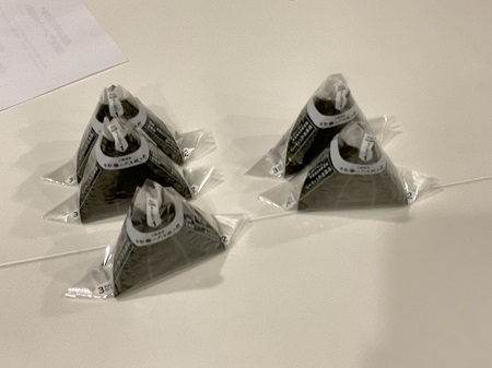 第2回(11月28日)では、セブン-イレブン・ジャパンの社員の方々(8名)に加え、セブン‐イレブンのお弁当やおにぎり、惣菜やサンドイッチ等を製造している株式会社武蔵野の社員の方々(2名)にご参加いただき、冒頭でおにぎりの食べ比べ体験をおこなって頂きました。学生たちは、通常の「ツナマヨネーズおにぎり」と、黄エンドウ豆由来の原料と通常のツナを使用した「みらいデリおにぎりツナマヨネーズ」※を食べ比べましたが(パッケージを同じにし、見た目では分からないものを準備して頂きました)、「普通のツナマヨおにぎりよりも美味しい!」「さっぱりしていて、プラントベースおにぎりの方が好き!」などの感想や意見が出てきました。
