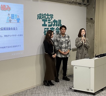 エシカル研究会は、地球環境や社会問題に取り組む課外活動団体で、これまで、学食でのプラントベースフードの企画・販売、企業と連携してのコンポストによる循環型社会の計画、狛江市でのアップサイクルワークショップ、学食から出る生ごみや廃油のリサイクル活動など、精力的に活動を行っています。