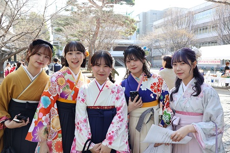 杉本学長の式辞では、4年前、コロナ禍の中で入学した学生たちが、困難な状況でも学びをとめることなく、友人と共に助け合いながら前に進んできたことを誇りに思うと、卒業生たちを称えました。また、大学生活を通して学生たちが身につけた、常に論理的に考える批判的思考力や、対話を通じて異なる価値観を理解する力は、社会で生きていくうえでとても大切なことだと述べ、これからも多くの信頼できる仲間を作り、しなやかにたくましく、そして自分らしく生きてほしいと激励の言葉を送りました。
