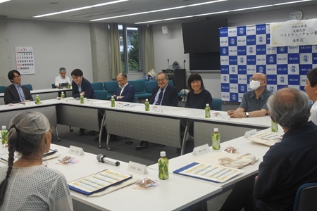 和やかな雰囲気の中で懇談会も行われ、学長、各学部長からの質問に対し、「知識だけではなく体験も大切」「学生に伝えたいことと考えさせたいこと」「AIの進歩もあるが、自力で取り組む力をつけてほしい」等、受賞者から、授業への工夫や試行錯誤している点についてコメントをいただきました。教員一人一人の熱意が成城大学の学習者中心主義を支えているということが再確認できたとともに、情報交換を通じて親睦を深めることができ、たいへん有意義な式となりました。