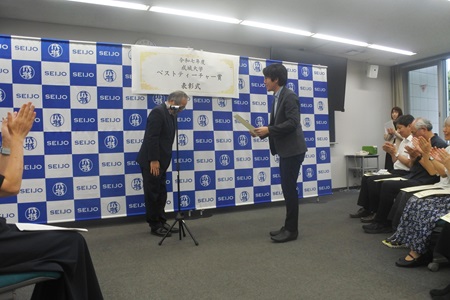 7月10日、2025年度ベストティーチャー賞表彰式を行いました。成城大学では学生が回答する「授業改善アンケート」の結果等をもとに、優れた教育および教育改革を先導している教員を表彰する「成城大学ベストティーチャー賞」を2019年度より設けています。