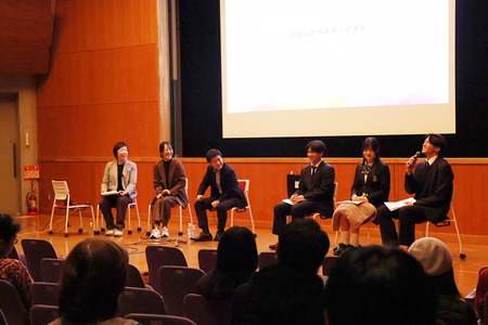 12月13日(土)、本学卒業生の合田貴将さんが主演を務めた映画『息子と呼ぶ日まで』の上映会を開催しました。当日は上映に加え、俳優・監督の黒川鮎美氏、レインボーノッツ合同会社の五十嵐ゆり氏、主演の合田さんをお迎えし、トークイベントも行いました。