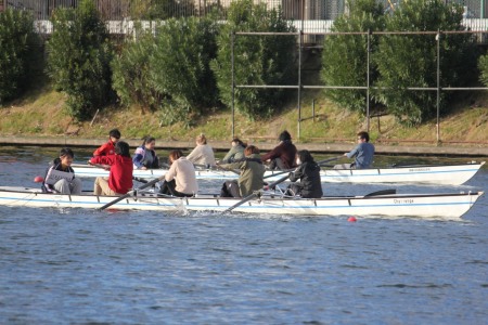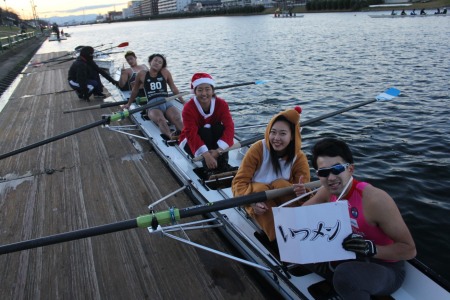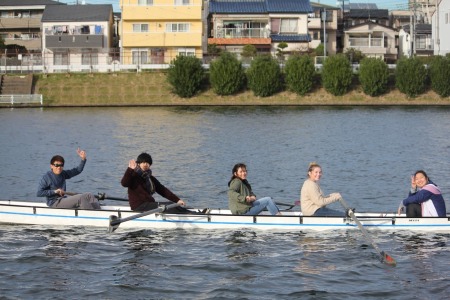 オールを水面に入れる瞬間を「キャッチ」、漕ぐことを「ロー」と言い、舵手(コックス)の、「キャッチ!ロー!」の掛け声に合わせ漕手たちはボートを漕いでいきます。
