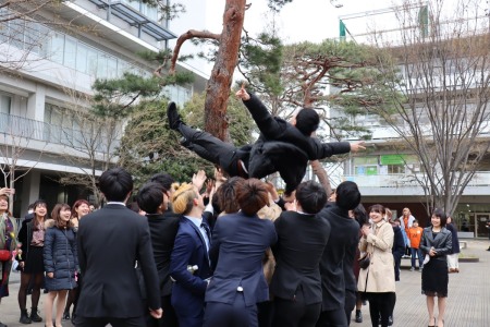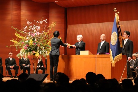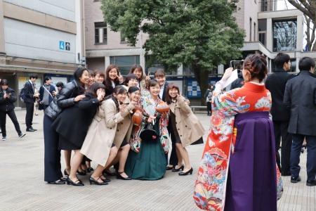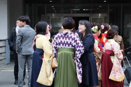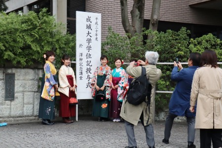 3月23日(土)、みぞれまじりの雨が降る季節外れな寒さの中、澤柳記念講堂で平成30年度学位記授与式が行われました。午前と午後に分かれて行われ、色とりどりの袴やスーツに身を包んだ大学院25人、大学1520人が卒業しました。戸部学長は、「修士、学士の2文字は懸命であったことの証」として、「今日は、謙遜は不要。よくやったと自身を褒めてほしい」と卒業生にはなむけの言葉を贈りました。また、「最初で最後のお願い」として、「心の中で良い、口に出してももちろん良いので、この場で家族へ『ありがとう』と言ってほしい」と促すと、「ありがとう」という言葉が確かに聞こえてきました。卒業生の皆さん、卒業おめでとうございます。成城大学で得た学び、経験、友達…さまざまなものを胸に羽ばたいてください。