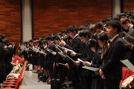 4月2日(火)、成城大学・大学院の入学式が午前と午後の2回に分けて、澤柳記念講堂で行われました。慣れないスーツに身を包み、少し緊張の面持ちの新入生たち。大学生1258名、大学院生19名が学生生活をスタートさせました。