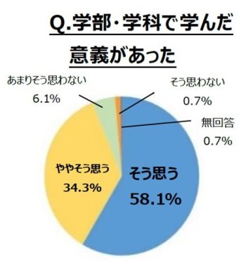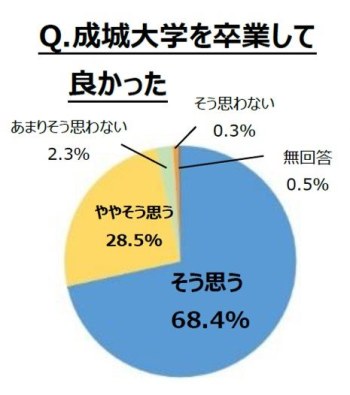 成城大学に対する気持ちとして、96.9%が「卒業して良かった」、92.5%が「学部・学科で学んだ意義があった」と回答。学生生活に関して、昨年に続き高い満足度を感じていると評価されました。