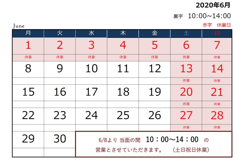 【営業再開のお知らせ】SEIJO×10営業カレンダー
