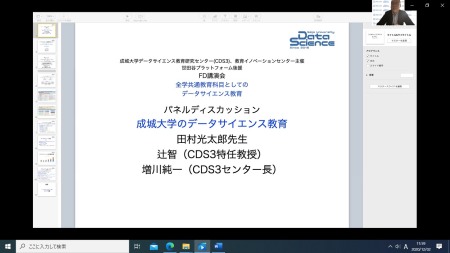 10月31日(土)、データサイエンス教育研究センター主催、教育イノベーションセンター共催、世田谷プラットフォーム後援によるFD講演会「全学共通教育科目としてのデータサイエンス教育」をオンラインで開催しました。