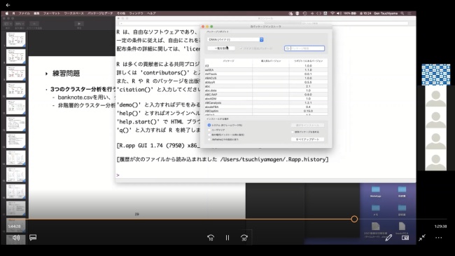 ワークショップの中では、プログラミング言語「R」の説明と、実際に「R」を用いて、夏目漱石の作品や源氏物語を多方面からデータ分析する演習等を行いました。