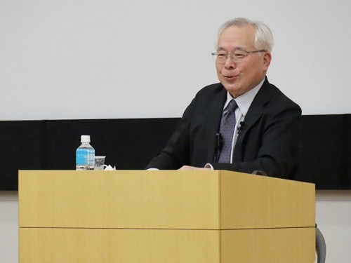講演の前後に挨拶された、林田文芸学部長、杉本副学長が「周囲に笑いの絶えない学長だった」と異口同音に述べられていましたが、最後の講演も時に会場から笑い声が上がる和やかな会となりました。