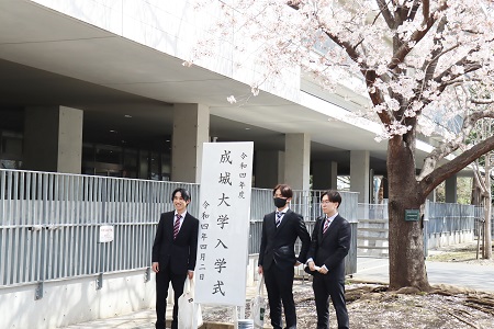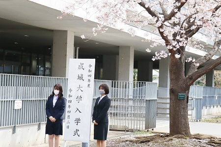 4月2日(土)、成城大学・大学院の入学式が澤柳記念講堂で行われました。午前と午後に計2回、2学部ずつ限られた教職員と新入生が講堂に集い、入学を祝いました。密を避けるため、ライブ配信も行い、ご家族の皆さまには配信にて新入生の晴れ姿をご覧いただきました。
