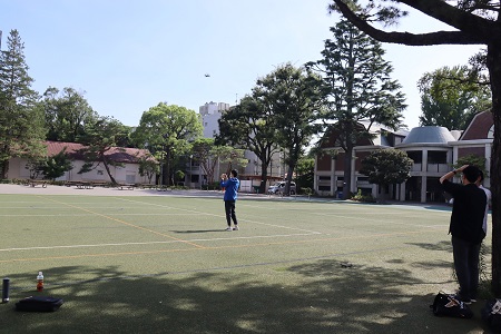 今回のワークショップは増井 敏克先生(増井技術士事務所)を講師としてお招きし、10名の学生が参加しました。ワークショップでは、先ずはドローンの定義から、その市場規模、関連法規、産業用ドローンの技術動向、近年活用が進むドローン事例などを幅広く学びました。講義を受けた後、受講生はアプリを使って小型ドローン「Tello」を操作し、離陸・写真撮影・着陸など基本的な動作を体験しました。