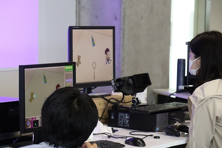 演習編では、実際に眼球運動測定装置を用い、文章を読むときの眼球の動き、「予測」の影響による瞳孔の拡大と収縮など興味深い実験を行いました。さらに実験で得られたデータを統計分析ソフト「R」を用いて分析しました。