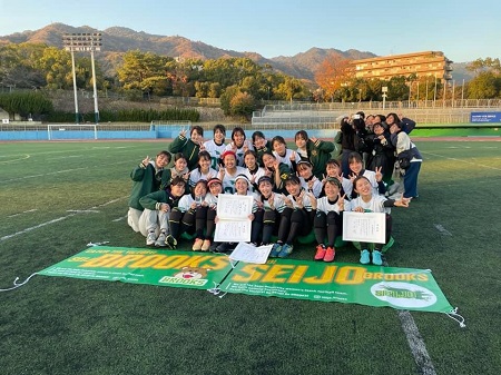 大学女子タッチフットボール部(関東学生女子タッチフットボール連盟優勝)が、12月10日に行われた第31回東西王座決定戦(『Princess Bowl』 神戸市王子スタジアムで開催)決勝戦で、関西学生女子タッチフットボール連盟優勝の京都府立大学と対戦し、13-8で京都府立大学を破り、学生日本一となりました。これまでのPrincess Bowlの歴史の中で、関東のチームが、関西に勝ったことはなく、初めての快挙となりました(詳しくはこちら https://kanto-wtfa.co.jp/?p=814)。
