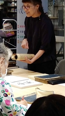 古書の装丁の変遷についても触れられ、巻子本は裏面が使えるため、巻き取って読み進めながら裏面に書かれた注釈も同時に目に入るなど、実物やレプリカを用いながら興味深い解説をいただきました。