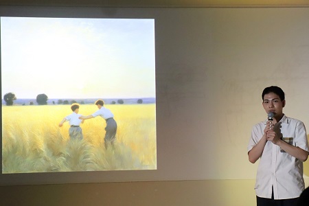 最初に窪田氏のAI関連特許などの業績とともに、自動運転AIの精度やAGI(Artificial General Intelligence:汎用人工知能)についてなど、最新の技術動向が紹介されました。続いて、テキストと画像の差異を最小にしていくことで絵画作品を生成するAIアートの仕組みを学びました。