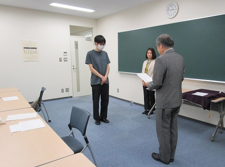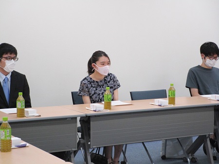 今年度は43名の応募の中から、厳正な審査の結果、5名の学部生・大学院生への給付が決まり、7月20日(木)に給付式が行われました。当日は杉本学長、選考委員を務めた教員、受給者の指導教員のほか、川上教授のご息女である川上郁子様にもお立合いいただきました。川上様や先生方から激励の言葉を受けて、学生たちは自身の研究に対する今後の抱負や想いを語りました。