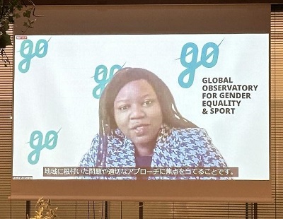 そして、スポーツとジェンダー平等の推進に取り組む国際的研究機関、Global Observatory for Gender Equality and Sport(※1)のリサーチディレクター、Dr. Lombe Mwambwa氏より、ビデオメッセージをいただきました。SGE設立の重要性として、アジアにおける地域に根付いた研究機関が生まれること、そして政策立案者やプログラム実施者の専門知識へのアクセスを可能にすることを挙げました。