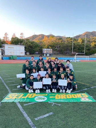 大学女子タッチフットボール部(関東学生女子タッチフットボール連盟優勝)が、12月2日(土)に行われた第32回東西王座決定戦(『Princess Bowl』 神戸市王子スタジアムで開催)決勝戦で、関西学生女子タッチフットボール連盟優勝の武庫川女子大学を21-19で破り、学生日本一(2連覇)となりました。