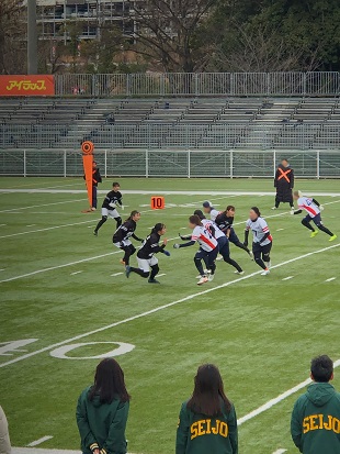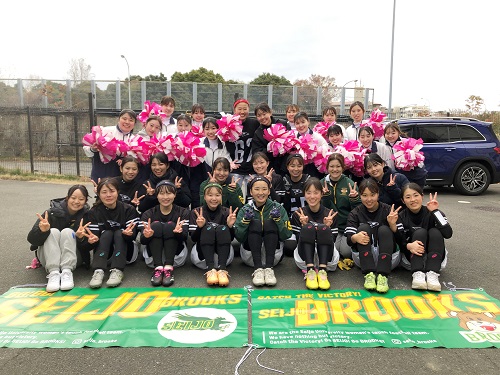 大学女子タッチフットボール部「成城大学BROOKS」が、2024年1月13日(土)MKタクシーフィールドエキスポ(大阪府吹田市)でおこなわれた女子タッチフットボール日本一を決める『第29回さくらボウル』に学生代表として出場し、一般代表チーム「HAILMARY」と対戦しました。試合結果は26-26の同点で大会規定により両チーム優勝となり、2年連続の女子タッチフットボール日本一を達成しました。
