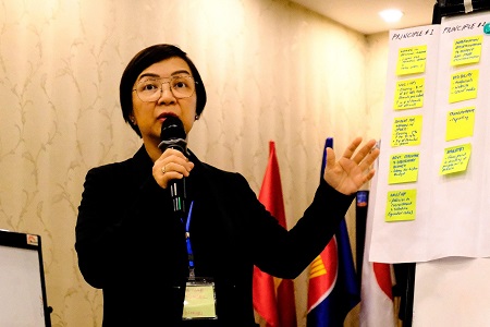 すべての情報提供を終え、残りのセッションでは、各国毎のディスカッションとグループワークを実施しました。各国毎の優先課題、スポーツ政策におけるジェンダー主流化に向けた戦略的計画、日本とASEAN加盟国の協力関係におけるスポーツに関する方針の提言を話し合い、発表を行いました。各国の発表後、情報提供者を務めた3名は「とても勇気づけられた」「性別毎のデータの不足や政府の意思決定層のジェンダーへの理解も強調されており、計画には利害関係者との協議が含まれている」などとコメント。さらに「ASEAN諸国は、スポーツそのものの推進だけではなく、その中にジェンダーの視点も取り入れてほしい」と述べた上で「このワークショップでまとめたことを各国文書にまとめ、お互いに情報を共有することで、今後も連携してアクションしていくことが大切」と、今後への期待を示しました。
