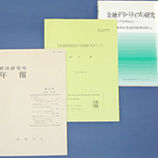 経済研究所では、講演会の記録や研究所の活動記録を掲載した「経済研究所年報」(年1回)や「経済研究所研究報告」(年数回)を発行しています。2014年に研究報告の英文名称が I.E.S. Research Paperと決まりました。