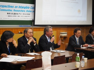 シンポジウムでは、元ユネスコ・パリ本部無形文化遺産課課長のNoriko AIKAWA氏がユネスコの無形文化遺産保護条約成立の経緯や成立後の変遷の経緯の概要について述べ、特に無形文化遺産を保持・継承するコミュニティーやグループ、個人が当該無形文化遺産の保護や継承において関わる何らかの経路を回復すべき時期にきていることを明らかにした。ブラジル・カンピーナス大学のAntonio A. ARANTES教授は、ユネスコの無形文化遺産保護条約の批准(導入)により無形文化遺産を保持、継承する当事者の存在がクローズアップされるとともに発言権が増大した事例等に触れ、ユネスコの無形文化遺産保護条約が地球規模で各国の文化政策にさまざまな影響を及ぼしていることを指摘した。中国社会科学院のChao Gejing教授は、中国において中国独自の季節観(1年間の区分法)、二十四節季とそれに基づく様々な民族のさまざまな儀礼や祭礼がユネスコの無形文化遺産に登録されてきた過程を具体的に示し、ユネスコの無形文化遺産への登録において当該無形文化遺産を保持・継承する当事者のみならず地方政府や各種学会、マスメディア等が重要な役割を担っていることを明らかにした。韓国全北大学のHanhee HAHM教授は、韓国がユネスコの無形文化遺産保護条約を批准(導入)するに当たり、韓国議会が新たな法律を策定して当該無形文化遺産を保持・継承する当事者たちの発言権を保障することになった経緯を報告し、グローバルレベルのユネスコの文化政策がナショナルレベルの立法にまで影響を及ぼしていることを明らかにした。ベルギー、ブリュッセル自由大学のMarc JACOBS教授は、ユネスコの世界遺産委員会/無形文化遺産委員会において、近年、当該世界遺産や無形文化遺産を保持・継承する当事者たちがCGIs(Communities, Groups, Individuals)として明確にその存在を認められ、また、CGIsの人々が当該遺産の保護に関与し、発言する権利を認められるようになってきたことを指摘した。アメリカ、カリフォルニア大学デービス校の民俗学者、Michael D. Foster教授は、日本各地の来訪神行事がユネスコの無形文化遺産に登録された事例を取り上げ、地方や地域に固有の無形文化遺産がユネスコの無形文化遺産に登録されるに当たり、当該遺産を保持、継承する当事者たちの意見や思いが往々にして捨象されてしまうことを明らかにした。