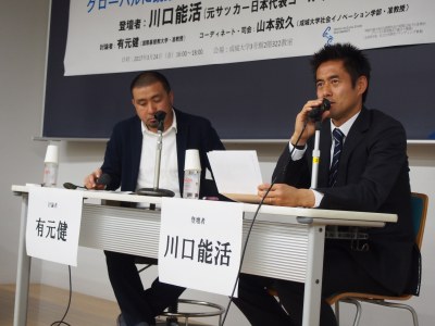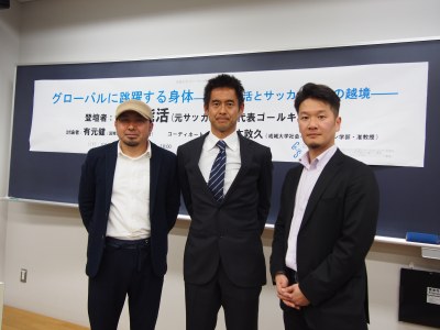 本シンポジウムの目的は、グローバル化が進行する世界における「身体資源」という観点から、国境を越えて活躍するアスリートの経験を読み解こうとするものであった。これまでサッカー日本代表として数々の国際舞台に立ち、またアジア人GKとして初めて主要ヨーロッパリーグに移籍した川口能活氏を討論者に迎え、スポーツ社会学者有元健氏(国際基督教大学准教授)と越境するアスリートの身体について討論を行った。