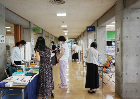 当日は、対面とオンラインの同時開催でしたが、7号館地下をフェミニズム書店街やワークショップ、映像上映やブース発表の会場として利用するなど、既存の学会形式に捉われない仕掛けが校内に生まれました。また、フェミニズムをテーマとするシンポジウムには、多くの方が来場し、教室を埋めました。