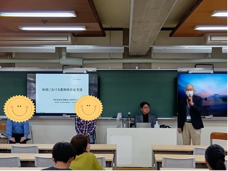 2025年12月2日(火)に、指宿センター長の刑事政策の授業において、東京ダルクの秋元恵一郎氏(精神保健福祉士、公認心理師)と東京ダルクの入寮者のお二人をゲストスピーカーとしてお招きし、「地域における薬物依存症支援」をテーマにご講演いただきました。