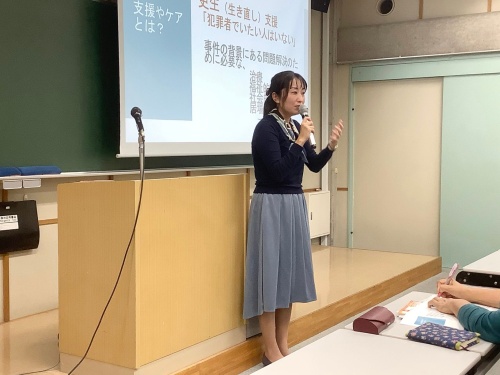 まず、先生は、治療的司法の定義について、「刑事手続きの中で被疑者、被告人に対して必要な支援やケアを提供することで問題解決をする司法観」であると確認されました。