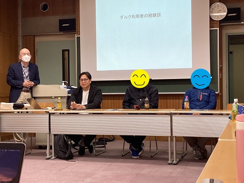後半は、東京ダルクの利用者に、ご自身の経験を語っていただきました。依存症になったきっかけやその後の状況、依存症からの回復段階でつらかったことなど、赤裸々に語ってくださいました。
