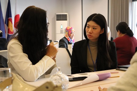 午後のセッションでは、参加国によるプレゼンテーションが行われました。参加者は、自国の「ジェンダー平等を推進するための取り組みの実績」や「リーダーシップ、コーチング、ジェンダーに基づく暴力、メディア等の分野に関する既にあるデータ」、そして「データ収集における課題」について10分間の発表を行いました。発表を受けて、情報提供者の一人であるPortas Consulting 日本オフィス代表取締役の井上智晶氏は、意思決定層にジェンダーの多様性が見られていることは「素晴らしいこと」と評価した上で「彼らを受け入れる環境についても考えなければならない」と、ジェンダー平等を前進させていくためには、数字だけでなく質的な状況にも目を向けていく重要性を説きました。