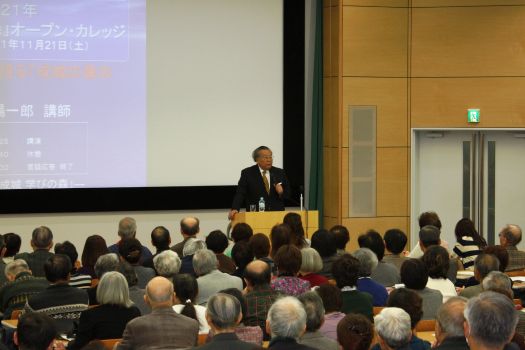 11月21日(土)、指揮者の大町陽一郎氏を講師にお迎えして、今年度第2回となるオープン・カレッジの講演会を開催いたしました。当日は、大町氏のヨーロッパでの超一流指揮者との交流やご経験をふまえたエピソードを、当時のお写真や海外メディアで取り上げられた記事とともに語っていただきました。会場入口には、講義で紹介した記事の展示も行いました。