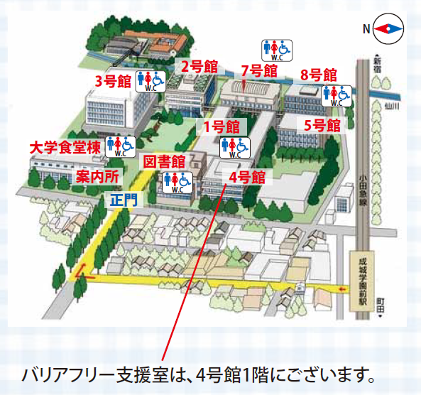 バリアフリー支援室では、障がいのある学生の修学上必要としている支援を把握し、必要に応じて関係者との調整を行っています。また、誰もが学びやすい修学環境の整備を目指して、全学的な委員会を置き、支援の検討・実施を行っています。