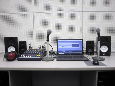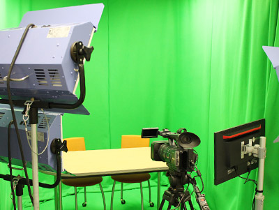 収録室にはグリーンバックが設置されており、背景の合成などが可能です。