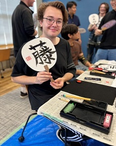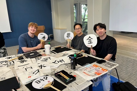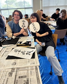 毎学期行われている交換留学生のための日本語の授業で、日本語ボランティアの成城生の協力の下、5月23日(木)に、書道体験が行われました。今回は夏に向けて、うちわに各々好きな文字を書きました。筆を持つのも初めての留学生は、一文字書くのに苦戦していましたが、ボランティアの成城生が根気よく丁寧にアドバイスをしてくれました。前期で帰国してしまう留学生にとって、思い出に残る日本のお土産になったのではと思います。