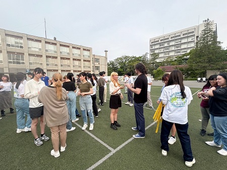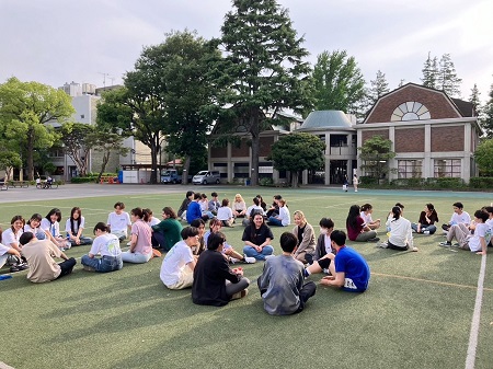 初めは成城生と留学生がそれぞれグループで話していましたが、アイスブレイクを行い、お互いに質問をしたり、しっぽ取りゲームで混合チームで協力して楽しむことで、成城生と留学生の絆が深まり、楽しい時間を過ごすことができました。