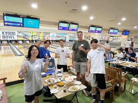 初めてボーリングを体験する留学生もいましたが、各レーンの成城生がアドバイスをしたり、応援し合ったりして、みんなで楽しい時間を過ごしました。また、ゲームの合間には軽食を楽しみながらお互いに話しをして、異なるレーンの人とも交流を深めることができ、成城生と留学生の絆がより一層強まりました。