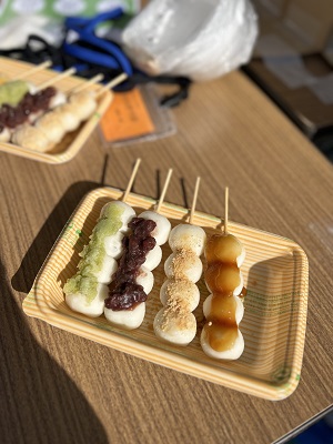 模擬店では、全四種類のお団子を販売いたしました。多くの方々にご来場いただき、予定よりも早く完売となりました。みなさまご来場ありがとうございました。